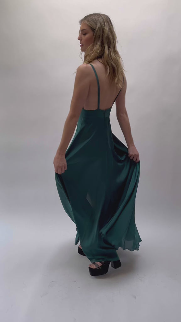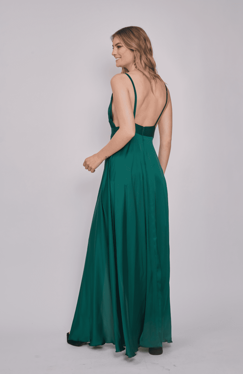VESTIDO MAXI DELFINA SEDA TAJO VERDE BOTELLA