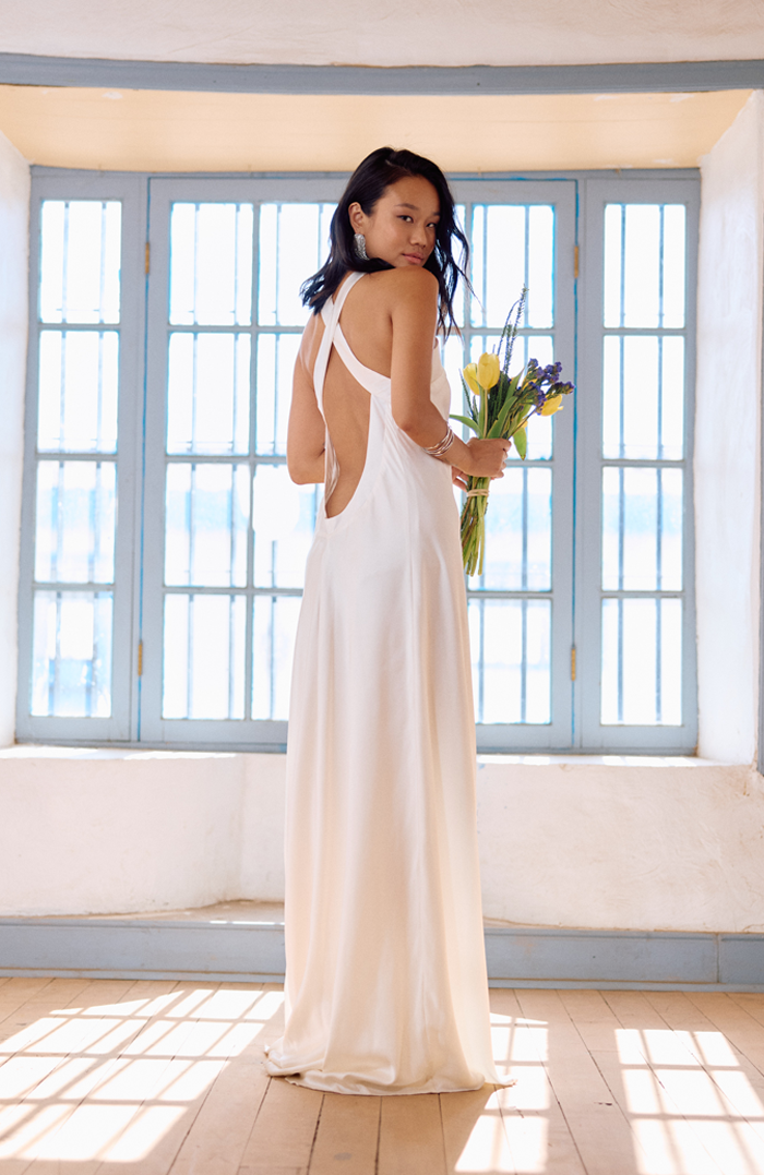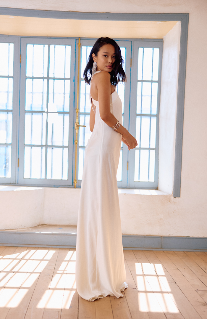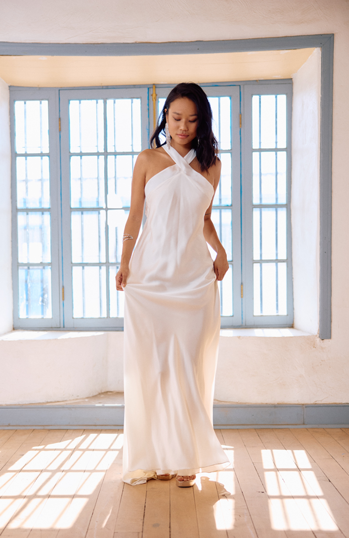 PRE ORDER NOVIAS: VESTIDO MAXI SIENNA SEDA BLANCO