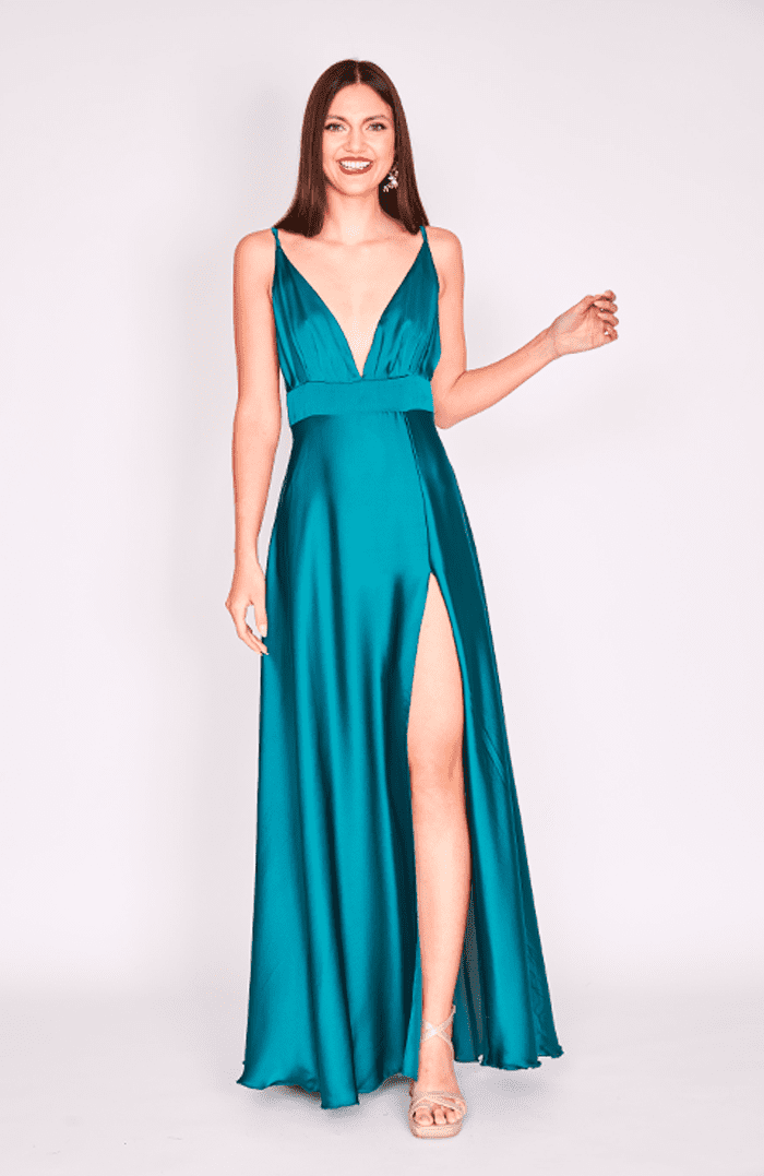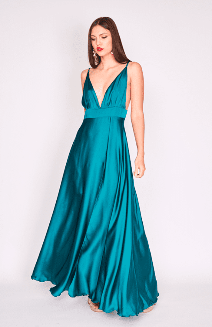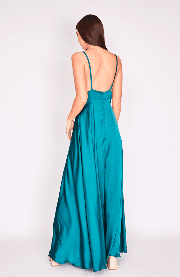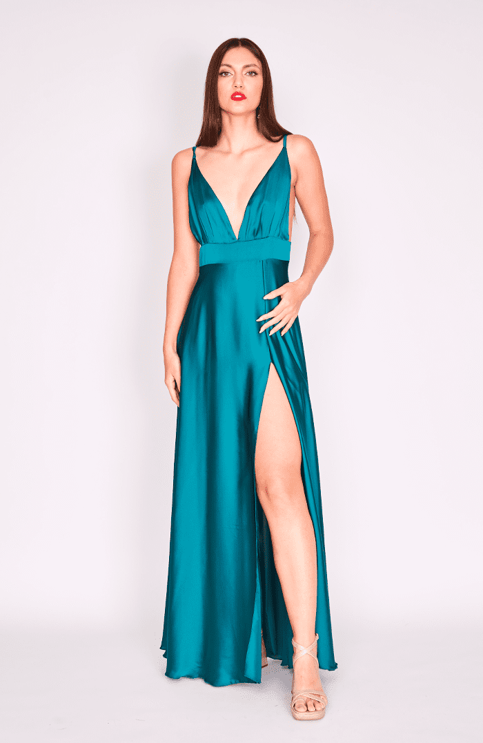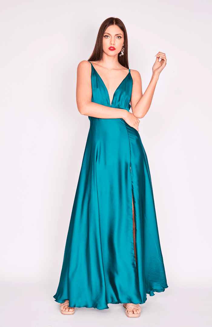 PRE ORDER: VESTIDO MAXI DELFINA SEDA VERDE PETROLEO