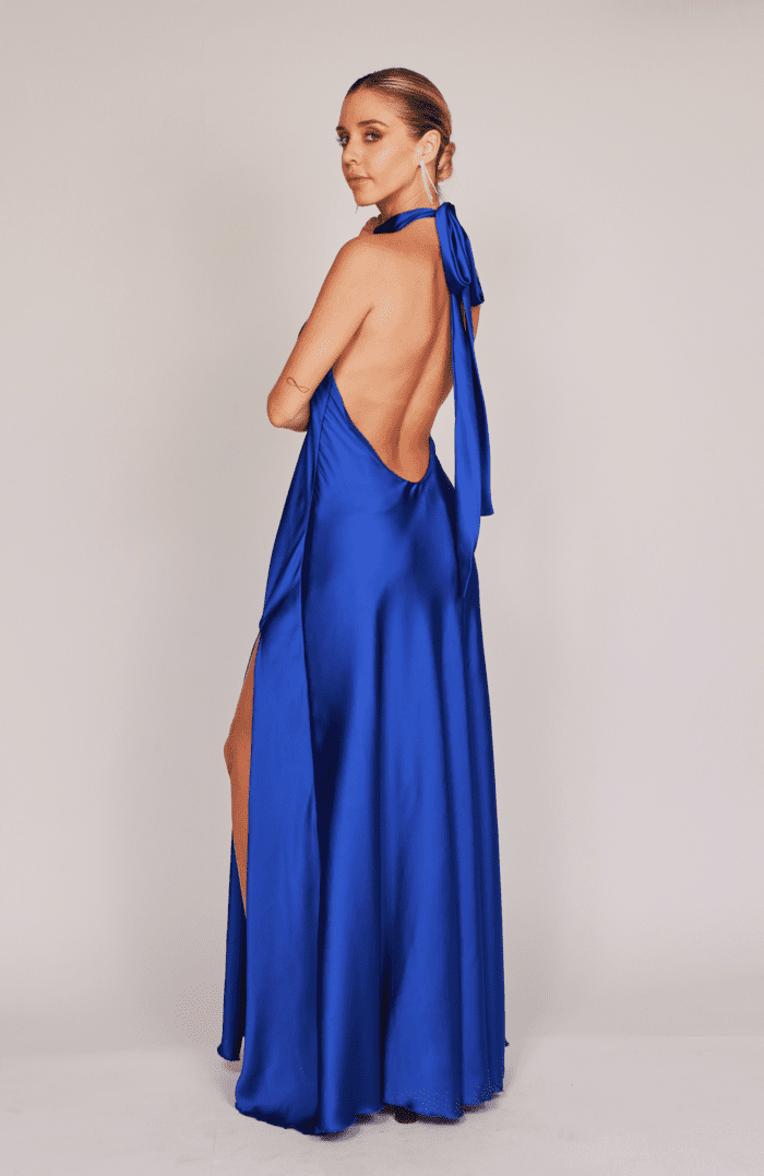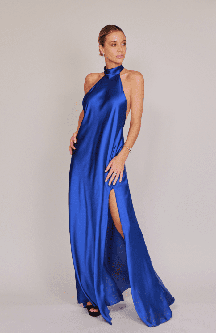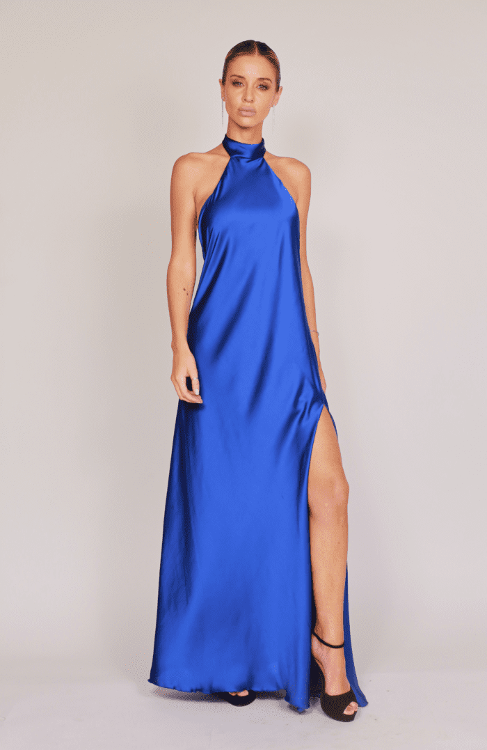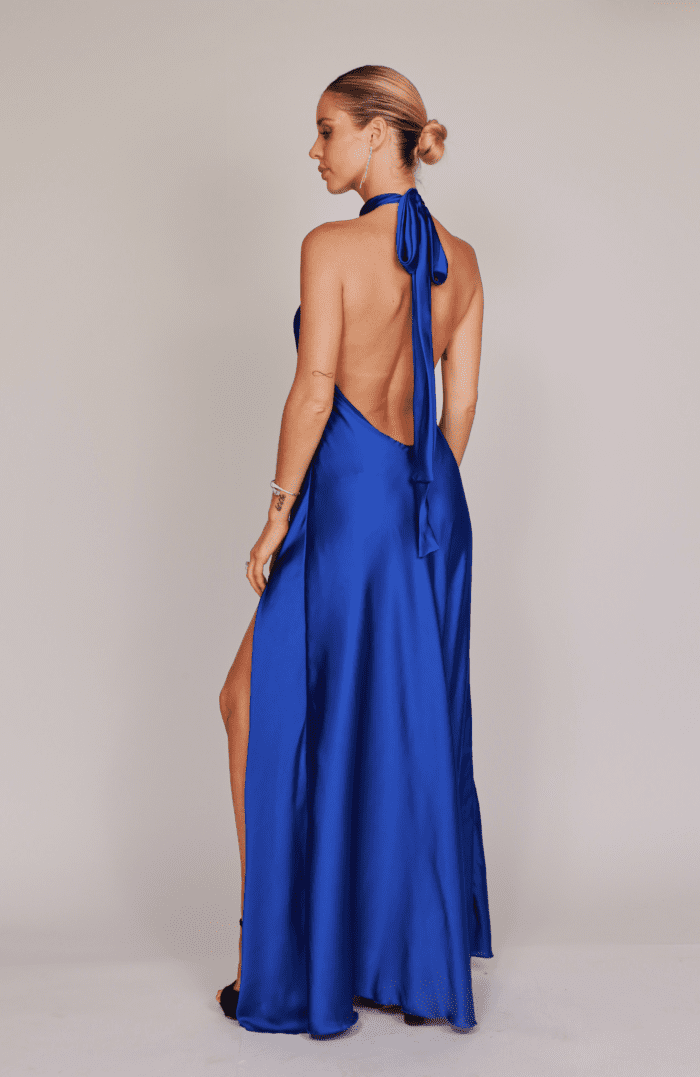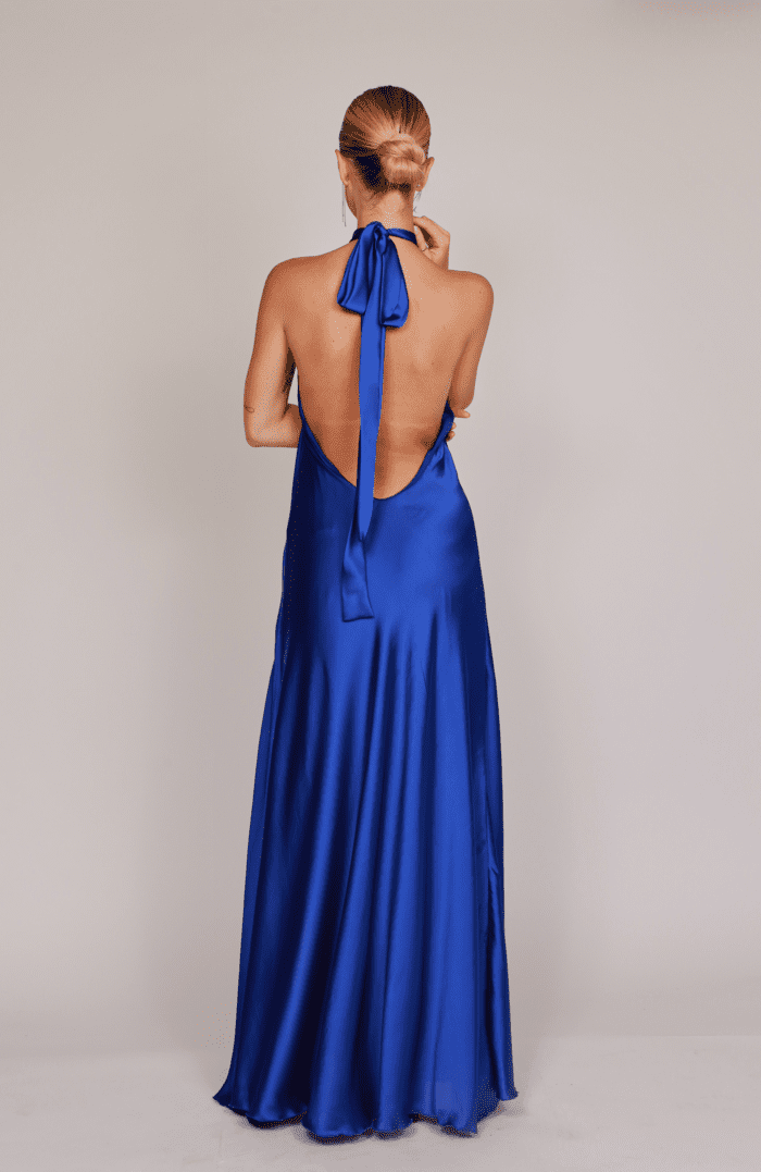 PRE ORDER: VESTIDO MAXI KENDALL SEDA AZULINO