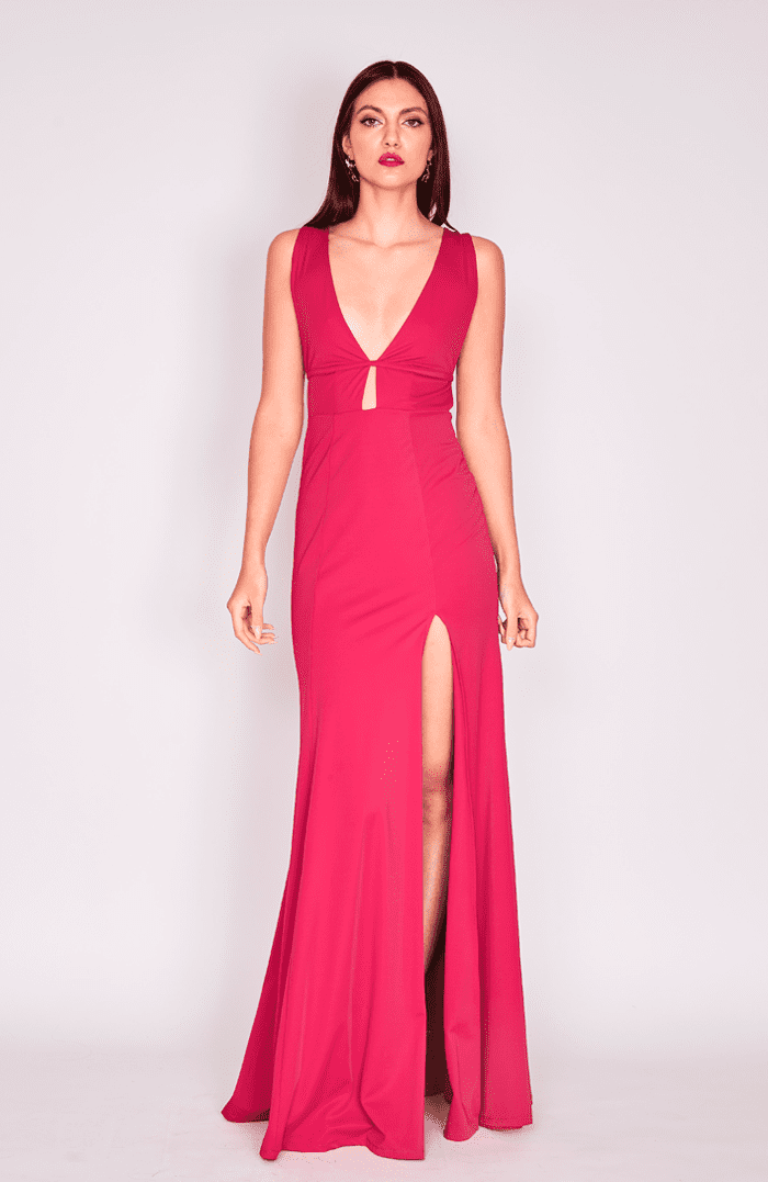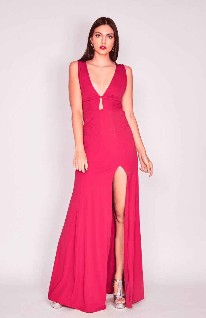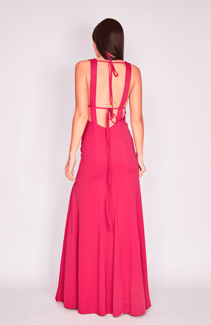 PRE ORDER: VESTIDO MAXI LOLA TAJO VERDE FRAMBUESA