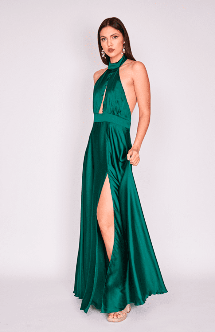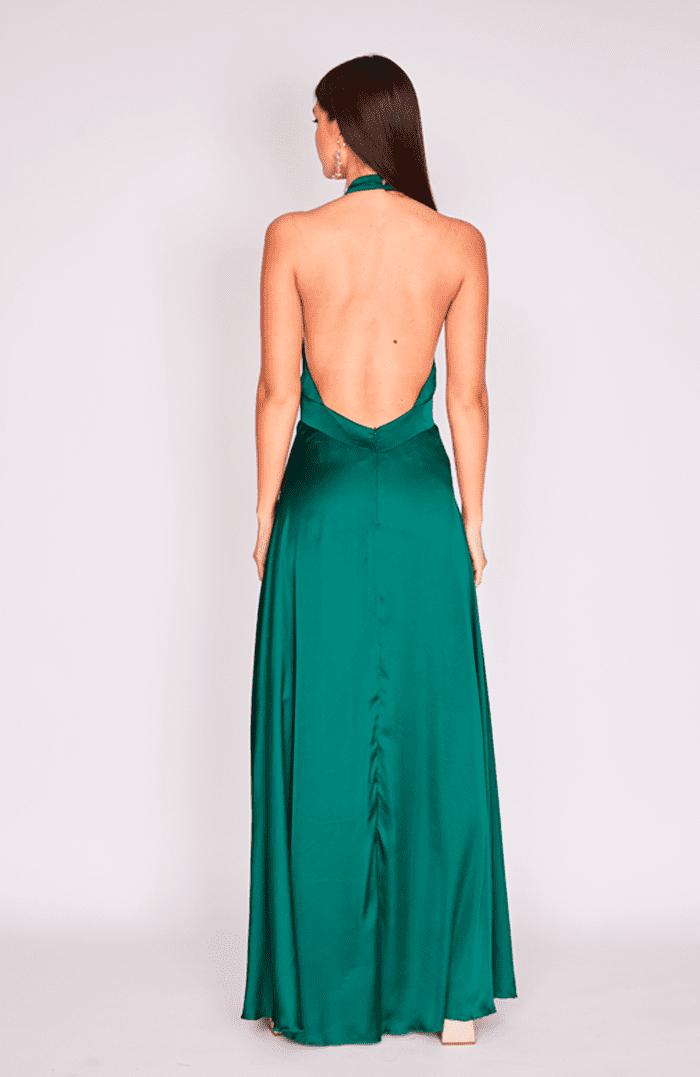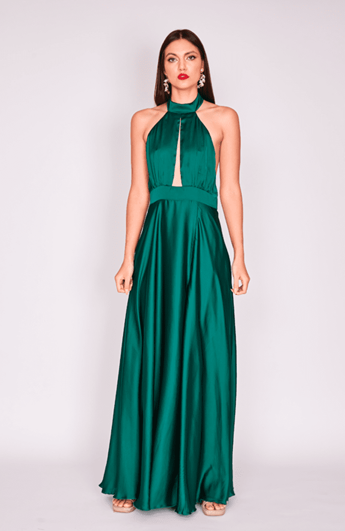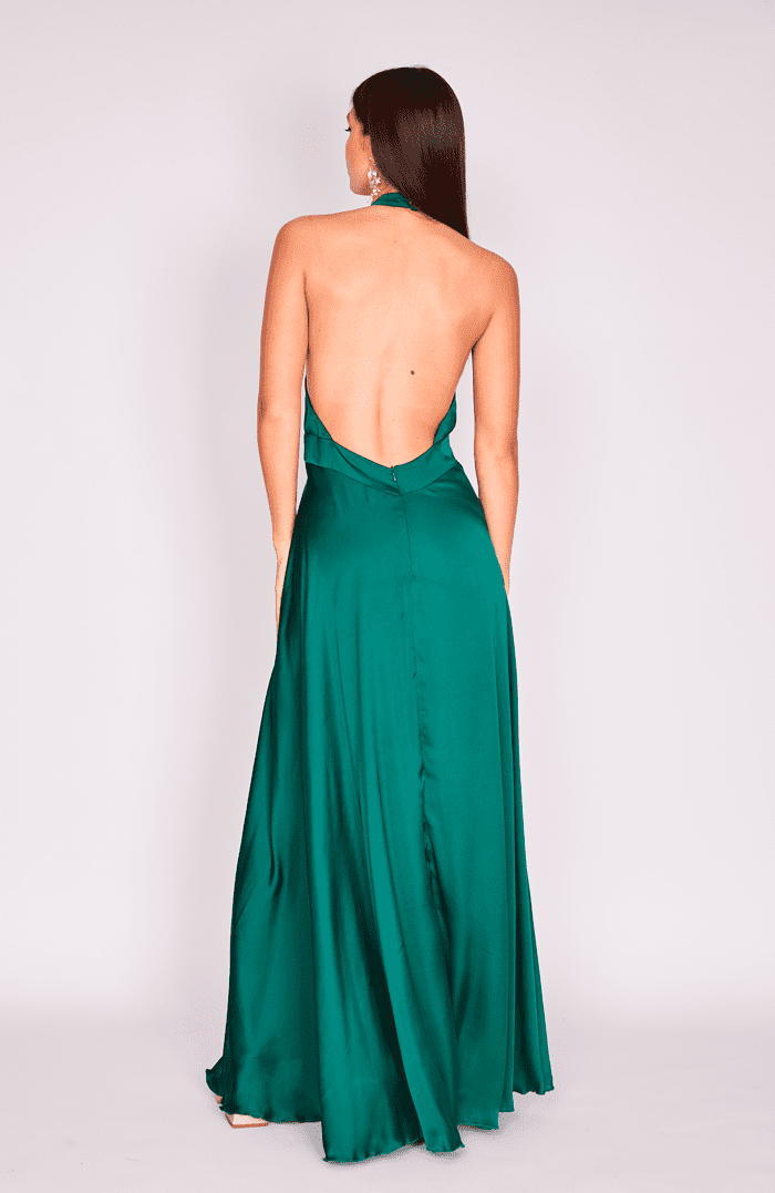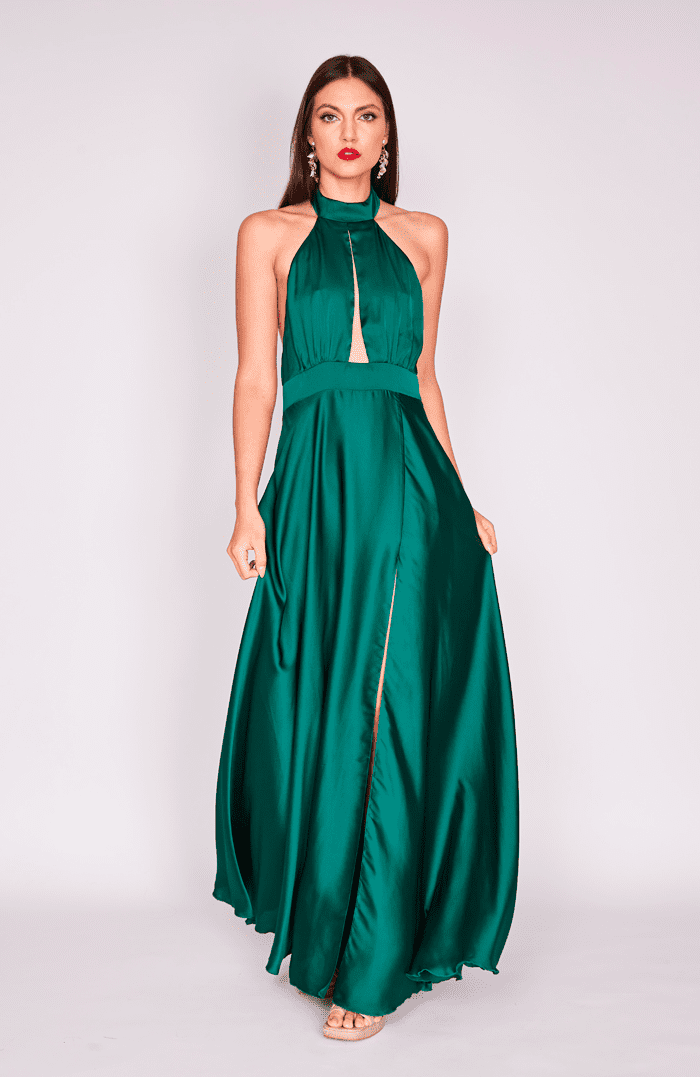 VESTIDO MAXI MARTINA SEDA VERDE BOTELLA