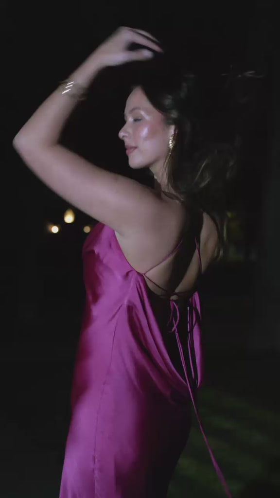 PRE ORDER: VESTIDO MAXI SANTORINI SEDA FUCSIA