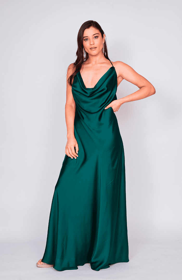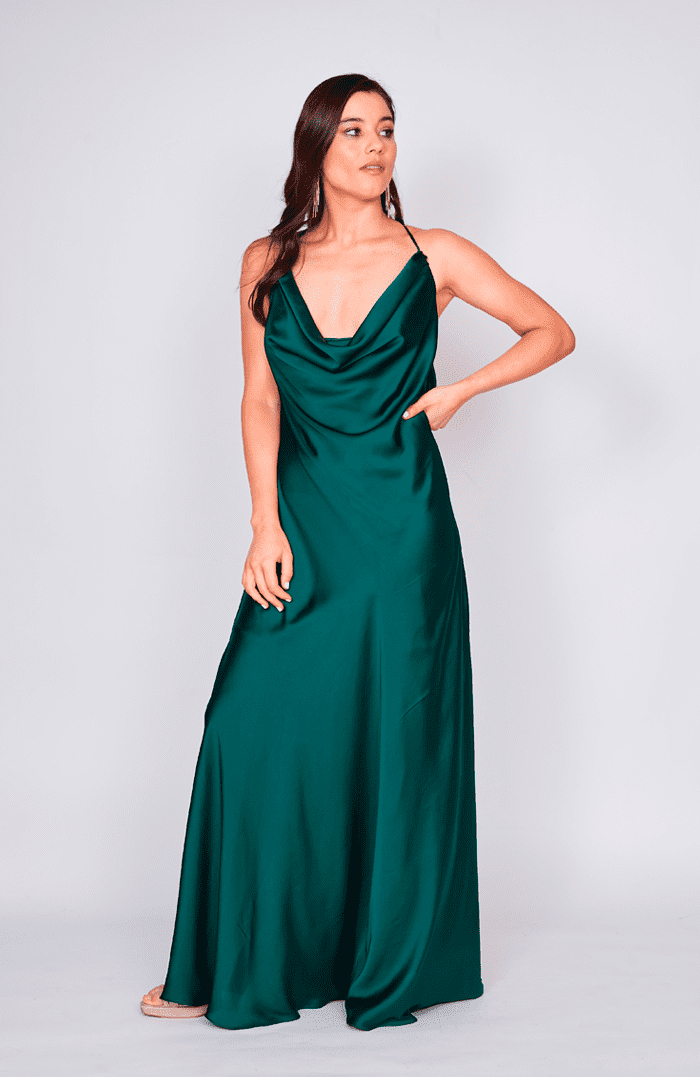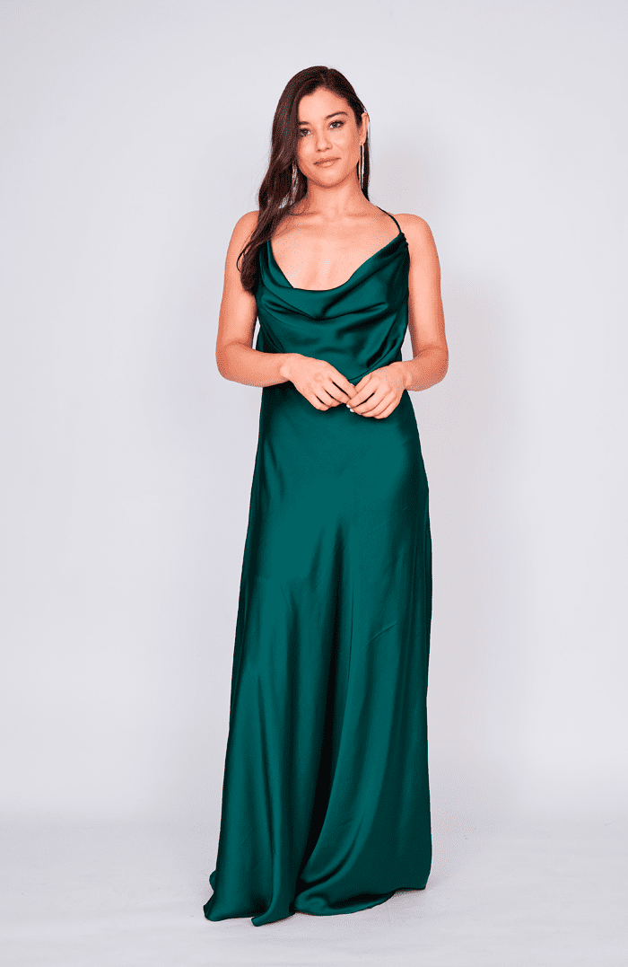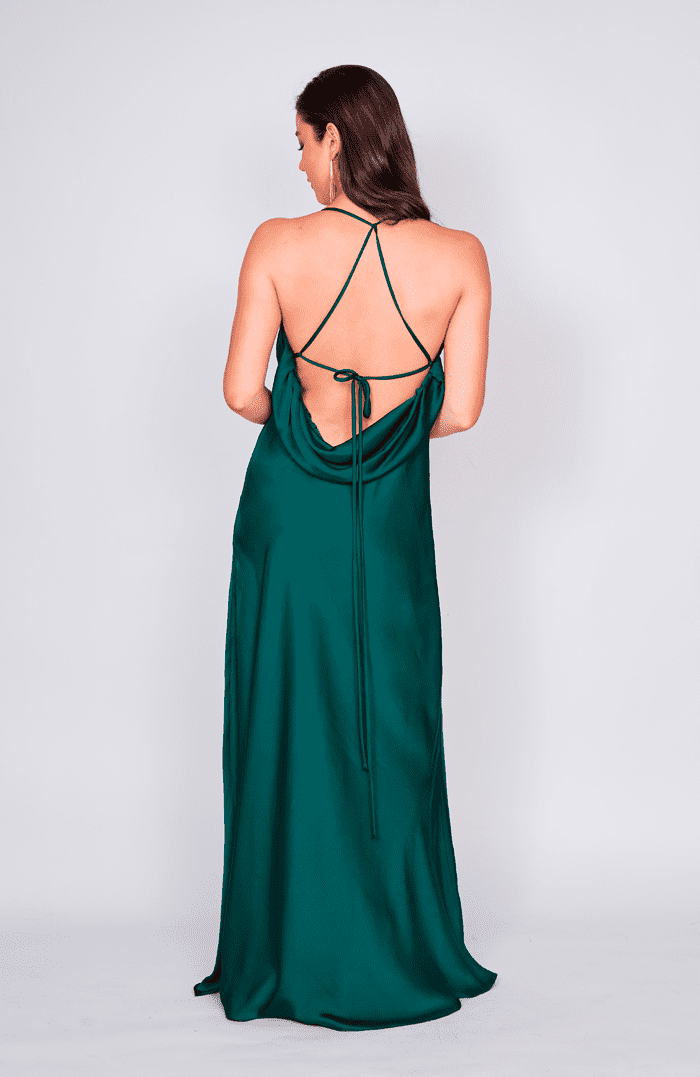 PRE ORDER: VESTIDO MAXI SANTORINI SEDA VERDE BOTELLA